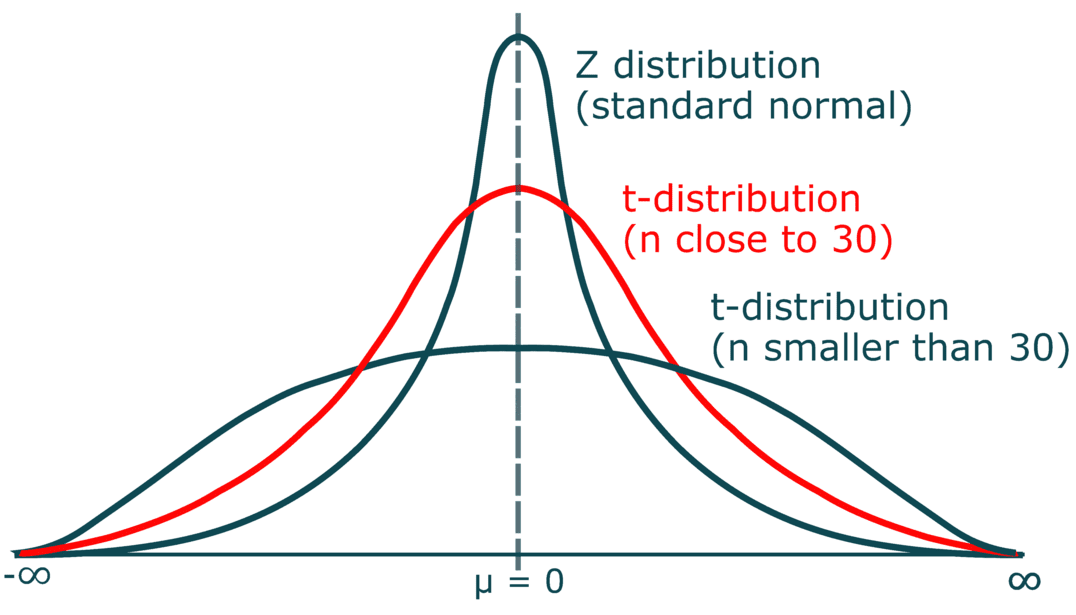 Z-test는 정의하기로는 모집단의 분산을 알 수 있을 때 사용하지만, 사실 모집단의 분산을 정확하게 파악하고 실험에 돌입하기는 매우 어렵다. 하지만 중심극한정리에 따르면 표본의 크기가 30 이상이면 대략적으로 정규 분포를 따른다고 하니, 그냥 가정하고 들어가는 것이다. 이와 반대로 T-test는 샘플 사이즈가 작고 (n<30) 표본 집단의 정규 분포를 가정할 수 없을 때 사용한다.